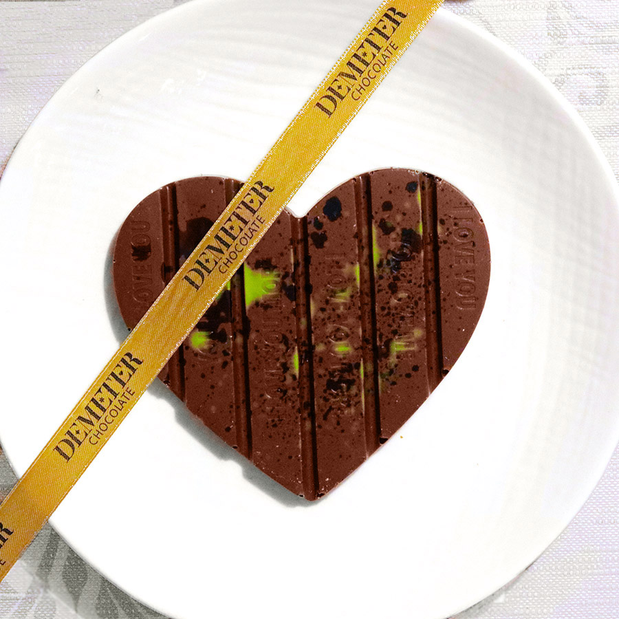 A legendává vált, EREDETI, első magyar Tic-Toc -on elhíresült Dubai csoki egyenesen a Demeter Csokiműhelyből. Szív alakú, limitált széria. A meglepően vastag, mennyeien roppanós 41%-os tejcsokoládé burok a híres kunafa tésztát és egyhén, azaz pont tökéletesen sós, 100% pörkölt pisztáciát rejt, méghozzá igen gazdagon. Egy falatnyi boldogság, amely ízlelőbimbóidat már az első harapásnál rabul ejti. Tökéletes ajándék Valentin Napra, Nőnapra, Anyák Napjára.